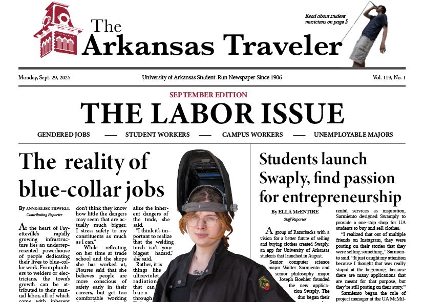 Lauren McGuire is the current Design Editor for The Arkansas Traveler newspaper at the University of Arkansas. She’s passionate about visual storytelling and illustration, combining creativity with strong attention to detail. Lauren thrives on transforming ideas into engaging designs that connect with audiences. With a background in both art and writing, she brings a thoughtful, story-driven approach to every project and is excited to grow in the creative industry.